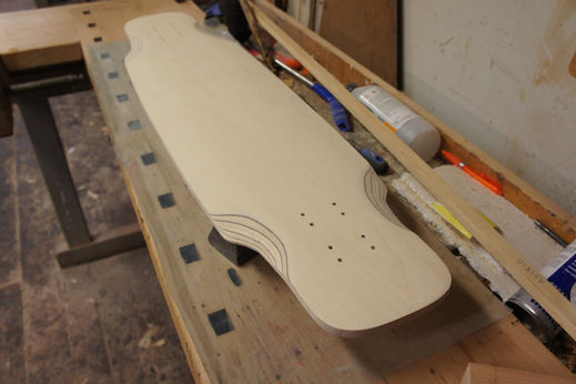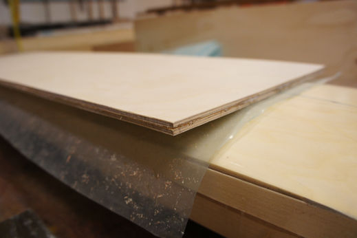 All boards started as 4mm plywood. I built forms to shape the concave of the board.